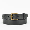 Pictured here on our classic vegetable tanned 1" full grain leather belt in black, these handmade belts are also available in brown and tan.
