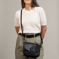 The Darcy handmade black leather crossbody bags are cut from vegetable tanned leather from Italy with a beautifully natural finish.