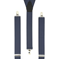 These beautiful Navy Pin-stripe braces are handmade by a member in our London workshop.