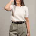 Our Classic 1 1/4" black leather belt is a perfect everyday wardrobe staple; 32mm and not too wide, not too narrow, it's a great versatile belt for jeans, dresses, or any type of trousers.