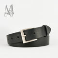 Pictured here on the heat embossed Tooled 1 1/4" Brown leather belt, and Classic Black 1 1/4" and Tan 1 1/4" Vegetable tanned leather belts, we make our classic full grain leather belts in Brown as well as heat embossed Black and Tan.
