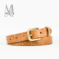 Pictured on the classic black 1" and the tooled tan 1", we also make these 1" in a sumptuous brown, always handmade in London using vegetable tanned full grain leather.