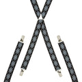 Bring a touch of class to your golf outfit with our skinny Argyle braces. The classic Argyle pattern looks great with the more contemporary slim suspenders.  Here they are in black and grey for some understated charm.