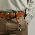Our belt loop key ring is a functional and practical accessory which ensures that your keys are always where you want them to be. A leather strap attaches to your belt with a simple popper safely and securely, whilst also being quick and easy to undo.