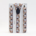 Classic mens patterned braces featuring a elegant floral print, always lovingly hand made by a member of our small team in our London Workshop.